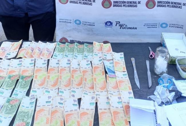 Durante el procedimiento los efectivos encontraron 8 gramos de Marihuana,7 semillas de cannabis,2 hojas de papel con restos de cocaína, 2 cuchillos con restos de cocaína, 3 tijeras con restos de una sustancia blanca, además de recortes plásticos varios, documentación y 90.000 pesos en efectivo.
