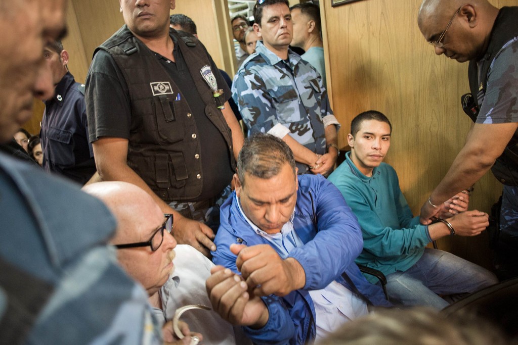 Juan Pablo Offidani, de azul, y Matías Farías durante el juicio de 2018: ahora fueron condenados por abusar y matar a Lucía Pérez (Christian Heit)
