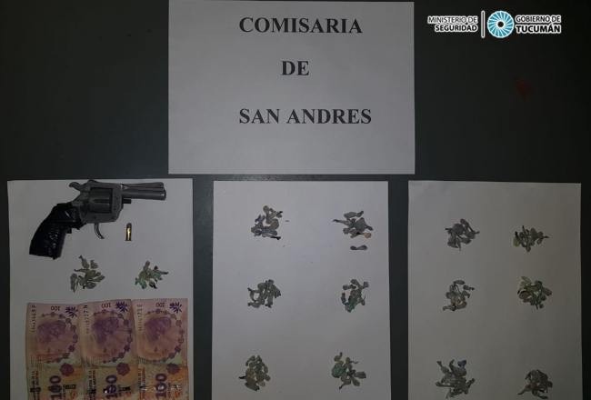 Según informó el subcomisario Adrián Onainda, jefe de comisaría de San Andrés, sucedió en el barrio pasadas las 18:30, en calle Sin Nombre, del barrio Ampliación Los Vallistos. “Los efectivos buscaban a los autores de la sustracción de un motovehículo, cuando sorprendieron en la vía pública a una persona de sexo masculino, quien aparentemente en la modalidad dealer, se encontraba vendiendo sustancias prohibidas, y al notar la presencia policial emprende la huida a pie, siendo alcanzado y reducido, encontrando entre sus prendas de vestir, numerosas dosis de una posible sustancia prohibida, como también dinero en efectivo y un revólver calibre 22 corto cargado con proyectiles en su tambor, medida realizada en presencia de testigos hábiles”, precisó Onainda.