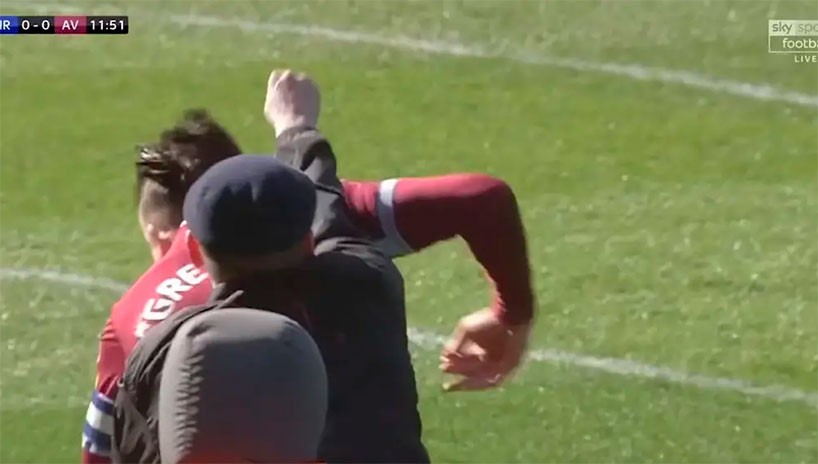En medio del clásico entre el Birmingham City y el Aston Villa un hincha saltó a la cancha y se fue directamente a agredir a Jack Grealish, jugador del equipo visitante.
