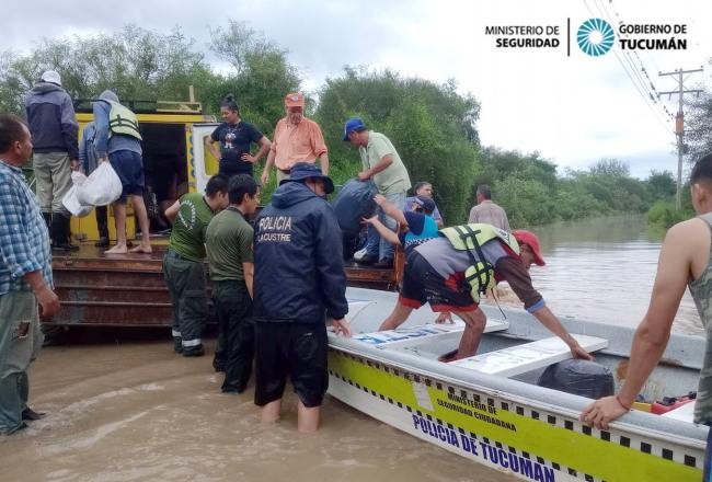 Durante la jornada del lunes equipos de la Comisaría de Monteagudo junto a efectivos Unidad Regional Sur con personal de la División Policía Lacustre, en un intenso trabajo con la Dirección Provincial de Defensa Civil, personal del Ministerio de Salud y equipos de la Comuna de Monteagudo, rescataron a 40 personas que estaban anegadas por la crecida de los ríos.