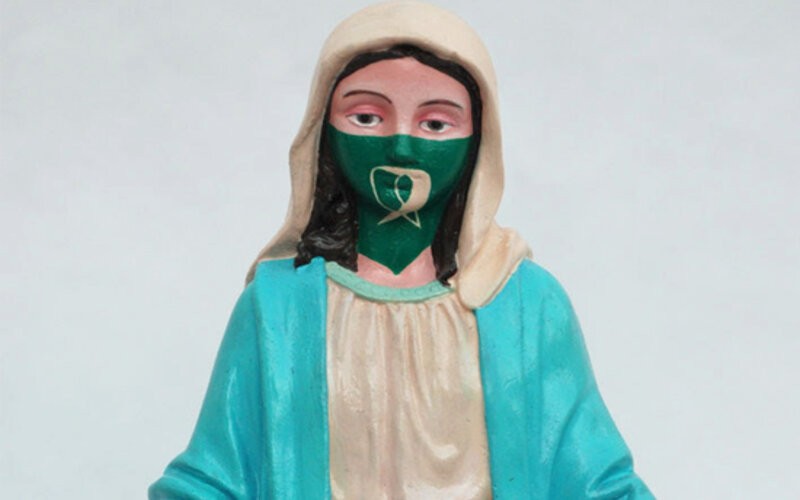 Pólemica en una muestra exiben a la Virgen con pañuelo verde
