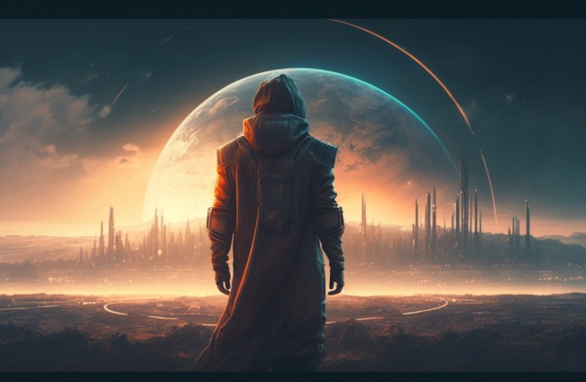 A partir de Júpiter, Midjourney se puso creativo, Júpiter es el planeta más grande del Sistema Solar, un poderoso gigante gaseoso que es considerado una maravilla del cosmos. A la vez, sus rasgos fascinantes generan dudas sobre la posibilidad de vida, pero la IA la imagina de esta forma.