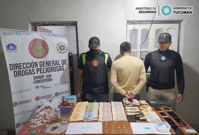 En el lugar aprehendieron a un hombre de 29 años, 21 envoltorios de cocaína, un trozo de la misma sustancia, ocho celulares, notebook, recortes varios, tijeras, marihuana, pendrive, balanza digital, dinero en efectivo y un cuaderno con anotaciones.