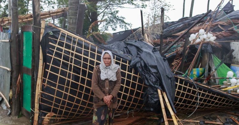 El fenómeno impactó la zona de Cox's Bazar, donde se encuentra el campamento de refugiados más grande del mundo, con más de 500 refugios de bambú destruidos.