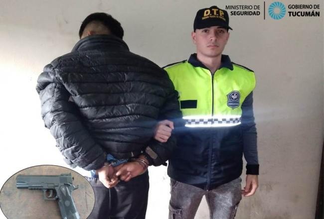 Los efectivos policiales comenzaron a perseguir al joven que corría con el teléfono celular de la víctima, a pocas cuadras lograron detenerlo y trasladarlo a la Comisaria Cuarta. Al llegar a la dependencia policial, realizaron la requisa, encontraron dinero en efectivo y una réplica de arma de fuego con la que había amenazado a la víctima.