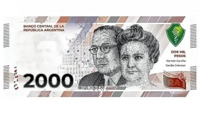 Como lo anunció en febrero pasado el Banco Central, el nuevo billete conmemora el desarrollo de la ciencia y de la medicina en la Argentina y tendrá como protagonistas al Instituto Malbrán, y a la Dra. Cecilia Grierson y al Dr. Ramón Carrillo, precursores en el desarrollo de la medicina en nuestro país. En el anverso del billete estarán las figuras de Grierson y Carrillo y en el reverso del billete se representa al edificio del Instituto Nacional de Microbiología Dr. Carlos G. Malbrán.