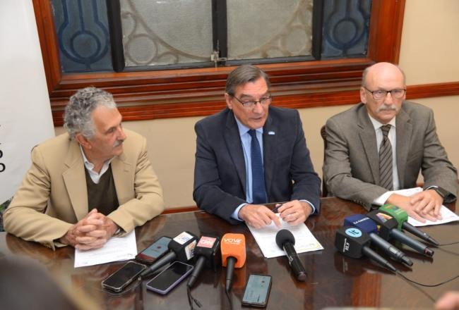 El ministro de Desarrollo Productivo, Álvaro Simón Padrós, junto a Daniel Ploper, director Técnico de la Estación Experimental Agroindustrial Obispo Colombres (EEAOC) y el asesor del directorio de la EEAOC, Jorge Scandaliaris, presentaron el informe: “Estimación de superficie cosechable y producción de caña de azúcar para la zafra 2023”.
