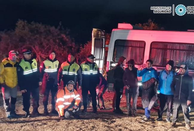 Finalmente, “cerca de las 21:30, y luego de ascender el cerro Ñuñorco avistaron el contingente; algunos de ellos ya con signos de cansancio, calambres e hipotermia, debido a que en la zona había una persistente llovizna y bajas temperaturas, logrando descender llegando a llanura a las 23:30 para luego trasladarlas hasta el al Hospital de Tafí del Valle para su evaluación”, precisó el comisario.