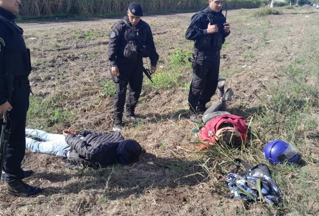 Dos jóvenes fueron aprehendidos este miércoles en la ruta provincial N° 303 mientras huían en una motocicleta minutos después de haber cometido un robo en la localidad de Finca Mayo.