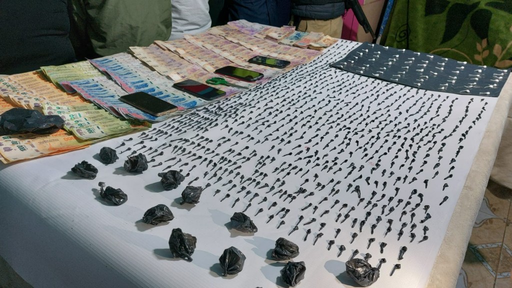 El comisario mayor detalló que durante el allanamiento se secuestró "1.000 envoltorios de cocaína denominados <<bochitas>>, que significan unas 10.000 dosis, se ha sacado de circulación ese veneno, las personas detenidas están con demasiados elementos de pruebas dado que no solo se secuestró la droga, sino dinero, anotación, recortes, cuchillo, pequeños elementos para la fabricación".