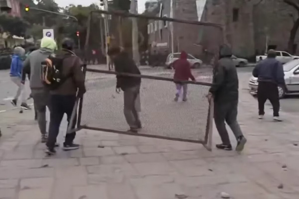Mientras puertas adentro de la Casa de Piedra se juraba la nueva Constitución de Jujuy, a las afueras se produjeron serios problemas entre manifestantes y la policía. Tras el avance sobre los vallados, tiraron gases lacrimógenos y balas de gomas en una verdadera batalla campal.