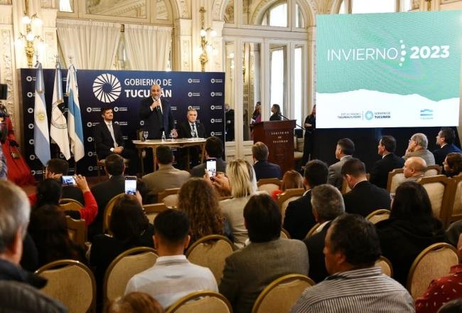 Tucumán lanzó este lunes su temporada turística de invierno 2023 en el Salón Blanco, encabezada por el Gobernador de la provincia, Juan Manzur; el vicegobernador, Osvaldo Jaldo, y el presidente del Ente Autárquico Tucumán Turismo (EATT), Sebastián Giobellina.   Tras fines de semana largos con cifras optimistas, la provincia espera un invierno con buenos resultados de la mano de las inversiones en infraestructura realizadas en los centros turísticos y la promoción del destino.   "Es una nueva temporada de invierno que nos trae esperanza, entusiasmo y alegría, a partir del trabajo que se viene haciendo en la provincia para dinamizar al turismo. Avanzamos con obras para mostrar lo lindo que es Tucumán, las bellezas de sus paisajes, su gente, su pueblo y su cultura”, destacó Manzur.   En esa línea, sostuvo que el Gobierno de la Provincia “invirtió y jugó fuerte, porque creemos en el turismo y estamos convencidos de que es uno de los grandes motores de la economía en la provincia de Tucumán”.   Con la presencia del ministro del Interior, Miguel Acevedo; el ministro de Salud, Luis Medina Ruiz; la ministra de Gobierno y Justicia, Carolina Vargas Aignasse; el ministro de Obras y Servicios Públicos, Fabián Soria; el ministro de Seguridad, Eugenio Agüero Gamboa; el ministro de Desarrollo Productivo, Álvaro Simón Padrós; el ministro de Educación, Juan Pablo Litchmajer; el presidente de la Cámara de Turismo de Tucumán (CamTur), Héctor Viñuales; el secretario de Turismo de la Confederación Argentina de la Mediana Empresa (CAME), Gregorio Werchow; el presidente del Ente Norte, Nelson Bravo; el sub interventor de la Caja Popular de Ahorros de Tucumán, Hugo Ledesma; la directora de la Casa Histórica, Cecilia Guerra Orozco; referentes del sector empresario local y representantes de los municipios.   Lanzamos la temporada de invierno tan esperada en la provincia, ya que no hay dudas que van a venir a visitarnos turistas de diferentes lugares y los propios tucumanos, recorriendo las bellezas naturales que tiene la provincia", sostuvo Jaldo que invitó a todos a visitar la provincia esta temporada.   El vicegobernador, Osvaldo Jaldo dijo: "Queremos agradecer el acompañamiento y la inversión del sector privado que ha realizado en las diferentes villas turísticas. Esto genera grandes fuentes de trabajo"Y añadió: "Estamos dotando de grandes servicios y esto se debe gracias al trabajo en conjunto de la provincia y el sector privado".   Por su parte, el presidente del EATT remarcó las campañas promocionales realizadas en: aeropuertos de Buenos Aires, Salta, Córdoba, Mendoza; en puntos estratégicos de Capital Federal con pantallas led; Familias Tours y Press Trip (40 medios visitaron Tucumán); trailers promocionales que recorrieron 13 locaciones en todo el país; presencia en workshops, ferias y eventos; una fuerte campaña digital; publicidad en vía pública, cines y transportes.   Asimismo, afirmó que "el informe anual del Observatorio Económico del Turismo de Reuniones en Argentina, mostró que Tucumán fue el 2.º destino sede".      En este contexto, Giobellina destacó que "San Pedro de Colalao contará con un espectáculo de luz y sonido, que será lanzado el 7 de julio y se llamará La Aparición Divina".   A su vez, destacó que "en materia aérea vamos a aumentar dos vuelos semanales con Mendoza desde octubre, y tenemos que recalcar el decreto por parte del gobernador Manzur que baja la alícuota para las actividades del turismo al 1.5. Esto viene a ser un 300 por ciento menos de impuestos provinciales en ingresos brutos".   Viñuales hizo hincapié en que "esta actividad no solo genera ingresos, sino que en el Top dos de la generación de empleo".