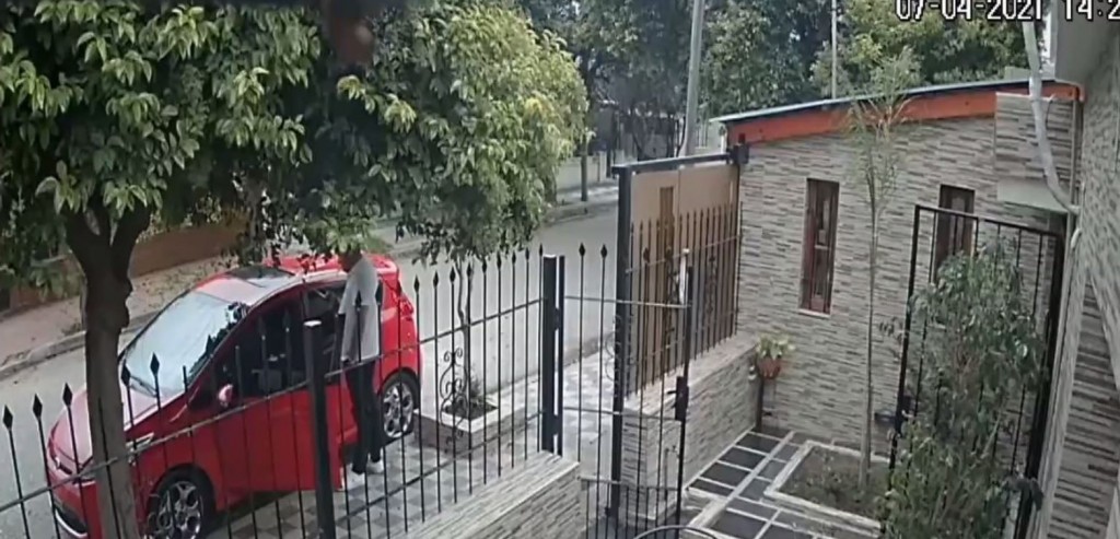 En el material exhibido se visualiza un automóvil Ford Fiesta Kinetic de color rojo que se utilizó en el robo al local comercial de venta de motos el 5 de abril de 2021 (de acuerdo a las filmaciones de las cámaras de seguridad del exterior del negocio). Además, se ve en las imágenes extraídas del inmueble a otro de los imputados (Luis Carreras).