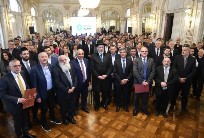 La máxima autoridad rabínica para el judaísmo en Israel llegó acompañado por el Embajador de Israel en Argentina, Eyal Sela; el director de la Academia talmúdica de Israel “Lejave Daat”, rabino David Iosef; y el rabino de Mikdash Iosef, Ureil Husni.