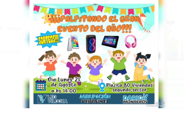 Vildoza manifestó que "invito este el lunes 21 a las 14 horas, hacemos la gran actividad del Día del Niño, no solo para los niños de Bella Vista, sino para todas las comunas".
