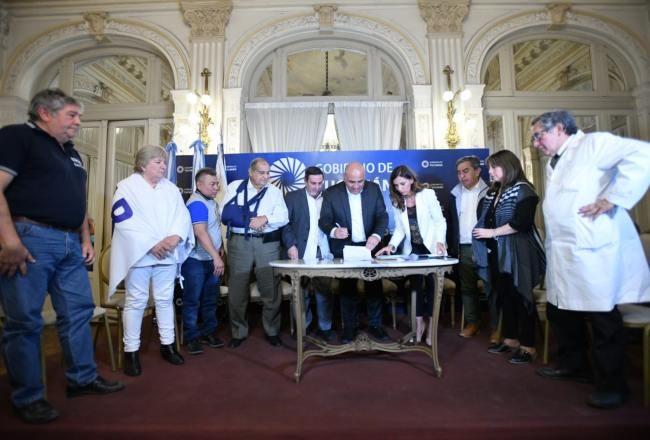 En tanto que Vargas Aignasse explicó: "Hoy firmamos, con cinco gremios de la salud, un 45 por ciento de incremento, que en la boleta de la sanidad va directamente al básico. Este 45 por ciento va a pagarse en dos partes, el 21 por ciento en agosto, y el 24 por ciento en octubre, y va a impactar en cada uno de los ítems de la boleta. Esto nos lleva -para graficar- que en un nivel inicial, el agente que recién ingresa, con cero años de antigüedad, en agosto va a percibir de bolsillo 240 mil pesos y en octubre se elevará a 296 mil pesos. También se elevaron el monto de las asignaciones familiares a un 56 por ciento hasta el mes de octubre. Este es un acuerdo por tres meses".