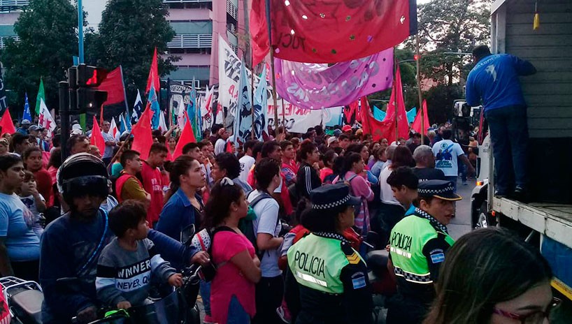 Manifestantes de la Confederación General del Trabajo (CGT) se unieron a la medida nacional y encabezaron desde esta mañana en la plaza Independencia una marcha para protestar contra las políticas económicas del Gobierno nacional.