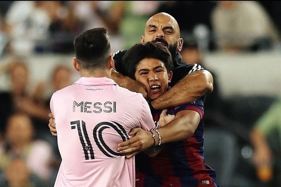 Eso fue precisamente lo que pasó este domingo en el BMO Stadium de Los Ángeles. En las imágenes capturadas por otros espectadores, se lo ve al joven con una camiseta del Barcelona con el nombre de Messi, cruzando todo el campo de juego en dirección al capitán argentino.