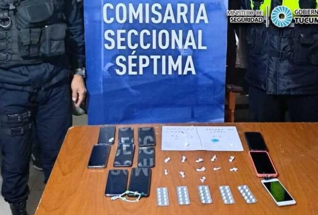 La policía realizó un allanamiento en una vivienda ubicada en calle Azcuénaga al 100, donde secuestraron 50 pastillas de Clonazepam, 12 bochitas de cocaína y 11 teléfonos celulares.