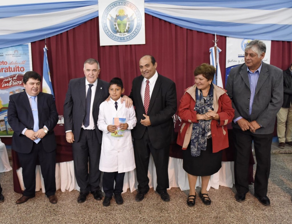 Osvaldo Jaldo junto al intendente de Trancas Roberto Moreno, el legislador Enrique Bethencourt y concejales del municipio participaron del acto de entrega del boleto gratuito a 17 establecimientos educativos de Trancas, la entrega de los beneficios se realizó en el Centro Cultural Lola Mora.