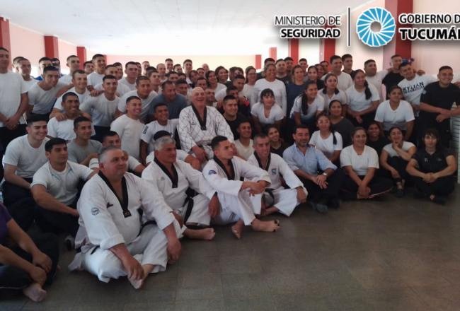 En el salón del Círculo de Oficiales inicio la jornada de Clínica Marcial, en la cual disertó el profesor de taekwondo 9no. Dan, Raúl Horacio Busca Kailer, que estuvo destinada al personal policial y penitenciario sin distinción de jerarquía, tanto masculino como femenino.