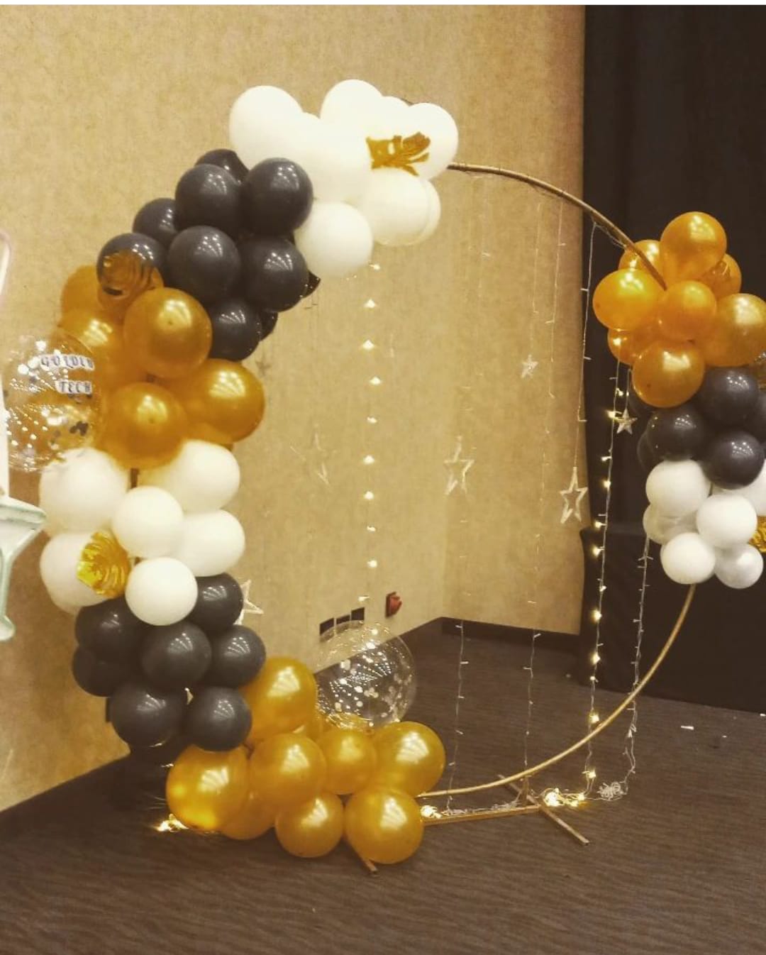 "¿Cómo festejar el cumpleaños de él estando encerrados?. Surgió la idea de hacerle una decoración de interiores, y creamos con cortinas metalizadas, algunos globos y globos grandes, con un candy super chiquito entre nosotros", continuó.