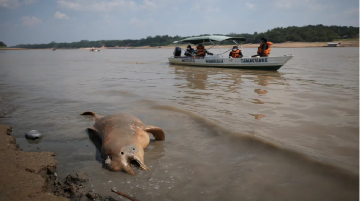 Brasil en alerta la peor sequía, ríos sin agua, Delfines muertos