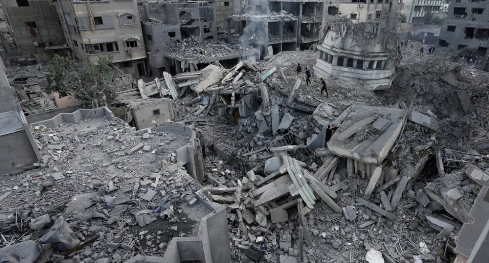 Varios edificios completamente destruidos tras los bombardeos israelíes en la Franja de Gaza.