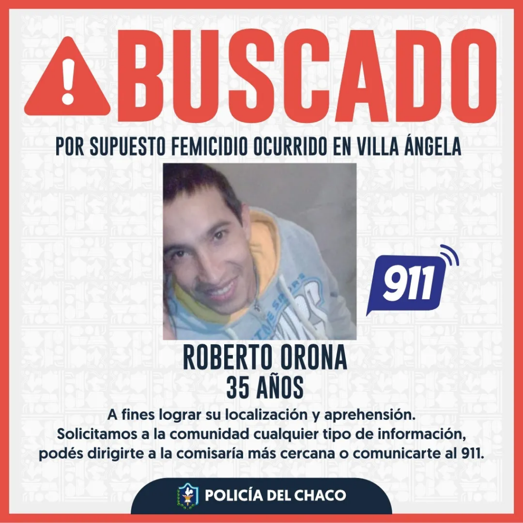 Se trata de un sujeto de 35 años, identificado como Roberto Orona, principal sospechoso del femicidio de su pareja. La víctima es Alejandrina Acosta, quien recibió golpes y una puñalada fatal en el cuello