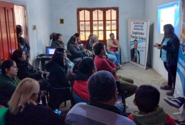 La Dirección de Alimentos del Ministerio de Desarrollo Productivo, representada en esta ocasión por los técnicos Luciana Neme Scheij y Marcelo Gordillo junto a pasantes de la dirección, desempeñó el dictado de la capacitación sobre Manejo Seguro de Alimentos en el Punto de Gestión y Encuentro Mancopa, departamento de Leales.