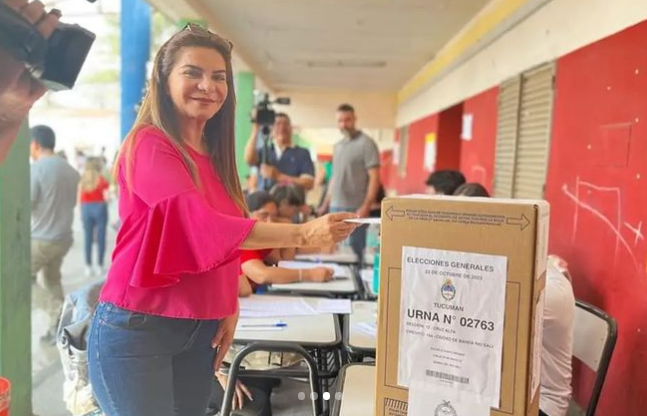 La candidata de Unión por la Patria, Gladys Medina, acompañada de su familia fue a sufragar, y señaló que recorrió la ciudad, y "en esta elección como candidata he recorrido, cada pueblo, ciudad, trayendo las propuestas de nuestro candidato a presidente, y quiero aprovechar a mi familia, a mi hija Lara, (a todos sus hijos), que me acompañó", dijo haciendo referencia a los meses que estuvo trabajando por la candidatura. Y agradeció a todos los ciudadanos y candidatos de la provincia.