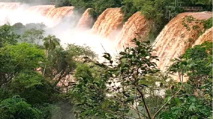 Las imágenes tomadas esta mañana por los guardaparques muestran a los saltos como no se los veía hace bastante tiempo, con un color marrón característico de un río que arrastra sedimentos de todo tipo, como troncos, ramas, árboles.