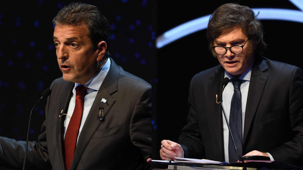 Los candidatos presidenciales Sergio Massa (Unión por la Patria) y Javier Milei (La Libertad Avanza) quedaron en la recta final hacia la Casa Rosada y se enfrentarán por tercera vez en un debate presidencial de cara al balotaje del domingo 19 de noviembre