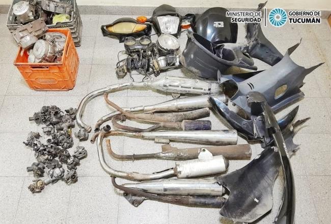 En el marco de esta investigación, se ordenó el allanamiento de dos domicilios en busca de armas de fuego y municiones, en uno de los cuales funcionaba un taller mecánico. Al llegar ahí, los efectivos encontraron gran cantidad de partes de motos sin sus papeles correspondientes, inmediatamente procedieron al secuestro de las mismas.