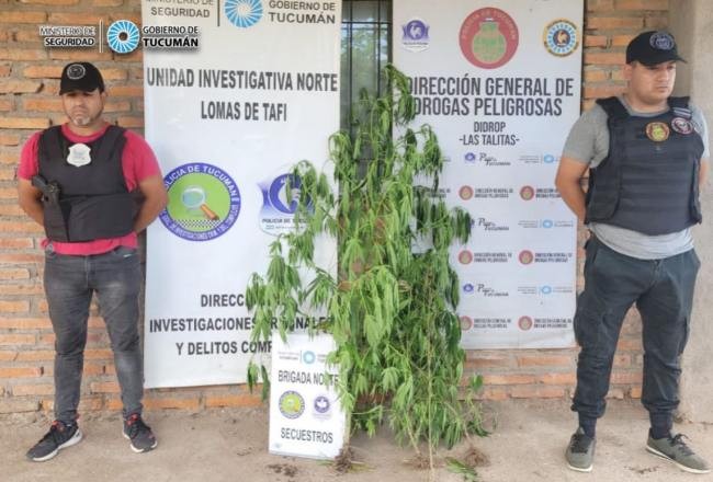 Durante la mañana, un equipo policial se dirigió a efectuar los allanamientos a dos domicilios del barrio La Mesada, en el Timbó, y a otro del Barrio El Vallecito, en El Cadillal, donde encontraron un parlante y 16 plantas de marihuana de entre 30 y 1,20 centímetros, elementos que fueron secuestrados. Asimismo, aprehendieron al propietario del inmueble.
