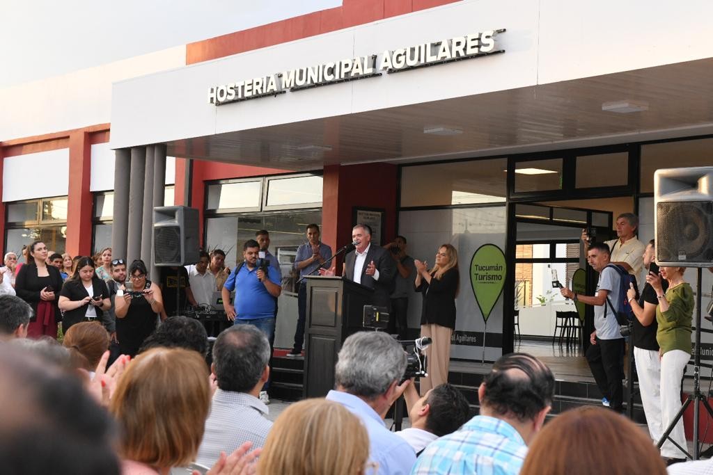 El gobernador, Osvaldo Jaldo, dejó formalmente inaugurada la hostería Municipal de la Ciudad de Aguilares, que cuenta con 46 plazas, Salón de Usos Múltiples (SUM), desayunador, quincho y sanitarios.