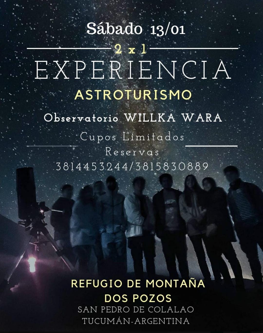 Mamaní indicó el la actividad que se llevará a cabo el próximo 13 de enero, en el Observatorio Willka Wara, se trata de "una experiencia nueva, San Pedro tiene muchos lugares donde uno puede disfrutar el cielo, es muy lindo y ahora los chicos de Dos Pozos quieren compartir esa experiencia con los turistas y se ha generado este nuevo atractivo y desde el lugar que ellos tienen, y vivenciar eso que uno lo puede ver todo el año en San Pedro".