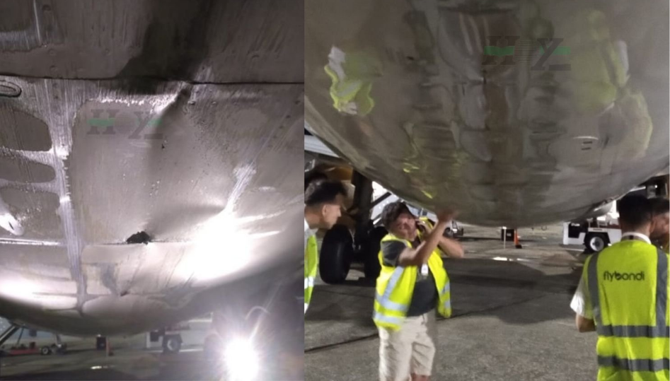 Tal como se ve en las imágenes, la aeronave involucrada es un Boeing 737-8Q8 (LV-KJE), sufrió daños en la parte de fuselaje.
