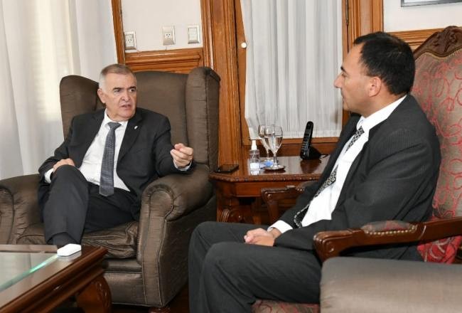 El gobernador Osvaldo Jaldo mantuvo un encuentro con el intendente de Trancas, Antonio Moreno, quien expresó su pleno respaldo a las recientes decisiones tomadas por el Primer Mandatario en defensa de la industria local del azúcar y el citrus durante el tratamiento de la Ley de "Bases" en la Cámara de Diputados.