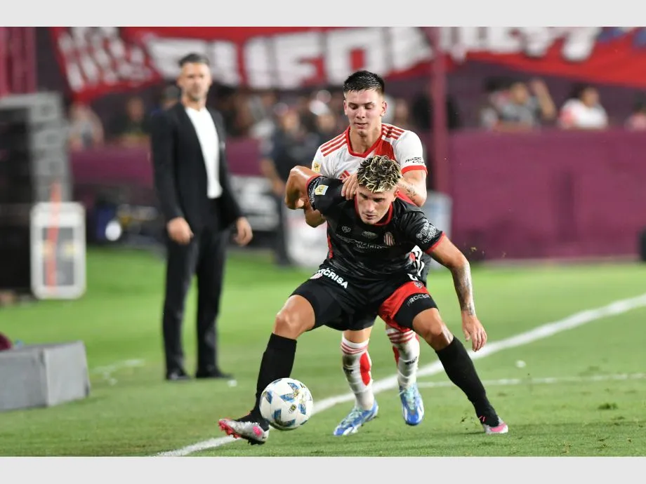 Lo mejor de River se produjo en los pies del chiquilín Mastantuono, quien debutó el domingo pasado en el empate ante Argentinos en el Monumental. Con 16 años, 5 meses y 17 días, el número "30" disputó su primer partido de titular y desplegó su mejor versión cuando lo hizo de enganche.