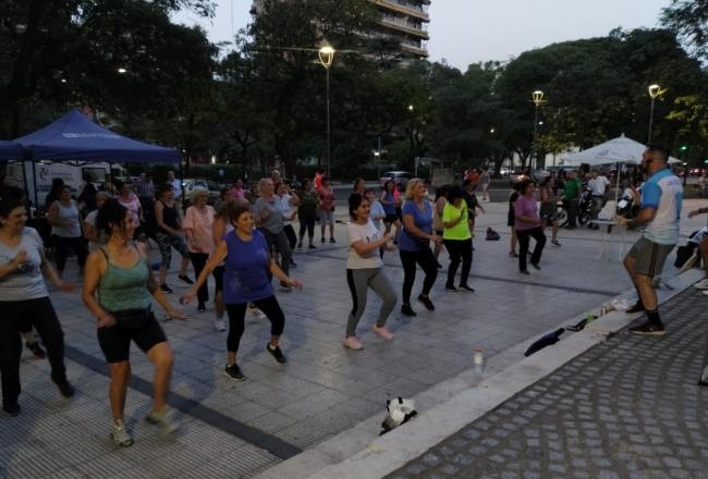 Por su parte el profesor Adolfo Steimberg de Plazas Activas, invitó a la comunidad a participar de las clases que se realizan en Plaza Urquiza los martes y jueves de 20 a 21 horas e hizo hincapié en la alta convocatoria que están teniendo los encuentros: “Este jueves se llevó a cabo nuevamente una gran actividad, con la colaboración del Área Operativa Centro. Contamos siempre con equipos del Servicio de Emergencias 107, que están a disposición en caso de que alguna persona se descompense en las clases. Además, ofrecemos repelente para la gente, incentivando los cuidados ante el dengue”.