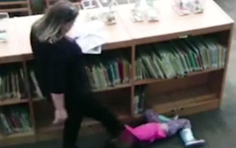 Un maestra pateó a una niña de cinco años que estaba escondida en una biblioteca en una escuela de Kansas, Estados Unidos, y el video tomado por las cámaras de seguridad se viralizó hasta provocar el despido de la agresora.
