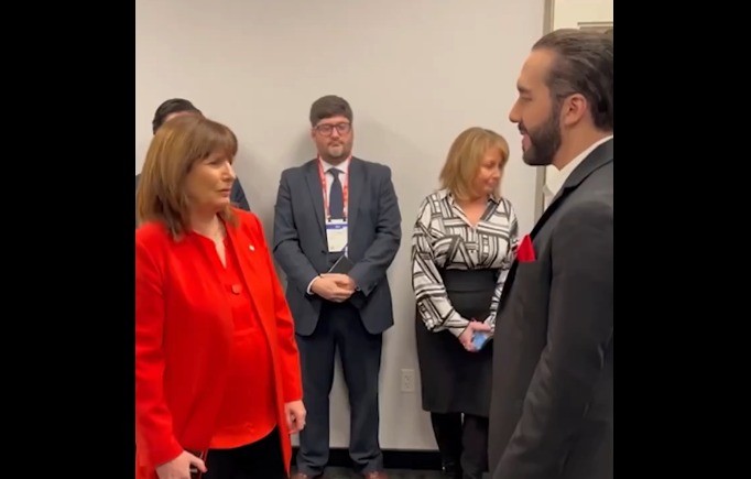 La ministra de Seguridad, Patricia Bullrich, mantuvo un encuentro con el presidente de El Salvador, Nayib Bukele, a quien le aseguró su intención de "seguir el modelo" que llevan adelante en ese país, al coincidir en la cumbre de la Conferencia de Acción Política Conservadora (CPAC) que se realiza en Washington y donde el sábado disertará el presidente Javier Milei.