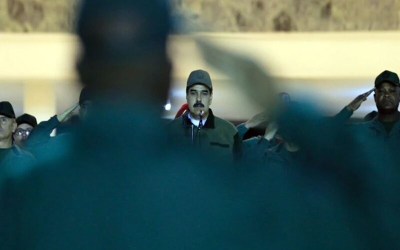 Maduro en un acto con miles de soldados, transmitido por televisión, en el que el alto mando militar le reiteró su lealtad. Dijo: "Sí, estamos en un combate, máxima moral en ese combate para desarmar a cualquier traidor, a cualquier golpista"