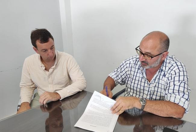 El presidente de Sociedad Aguas del Tucumán,  Marcelo Caponio, en compañía del ministro de Obras y Servicios Públicos, Santiago Yanotti, firmó el contrato con la empresa que perforará el nuevo pozo de agua potable en barrio Juan B. Terán.