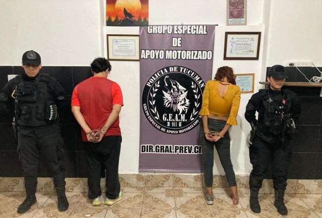 En un procedimiento realizado ayer miércoles por los efectivos de la División Grupo Especial de Apoyo Motorizado (GEAM), una pareja fue aprehendida luego de que intentara huir a toda velocidad ante la presencia policial y posteriormente agrediera a los motoristas