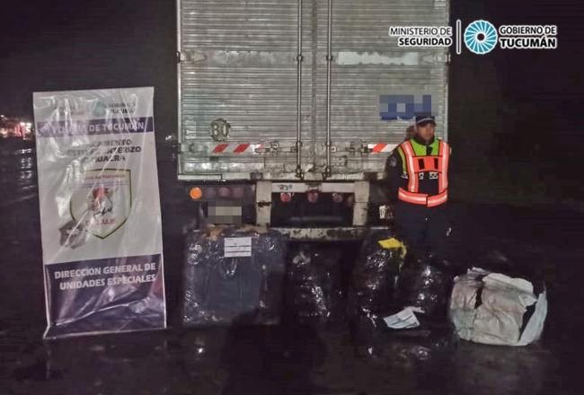 En la madrugada de este jueves, los agentes, que se encontraban apostados en la Ruta Nacional 38, interrumpieron la marcha de un camión perteneciente a una conocida empresa de encomiendas. Tras examinar rigurosamente el acoplado encontraron, entre el cargamento, 6 bultos embalados que contenían un total de 10 llantas de diferentes rodados y de origen extranjero.