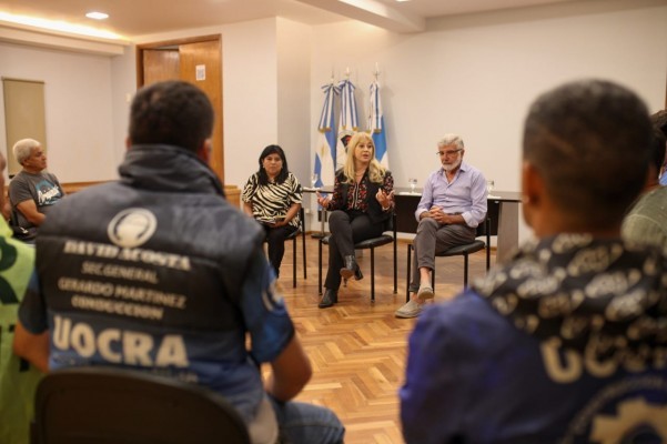 Durante la reunión, se acordó que los obreros constructores agrupados en la UOCRA trabajarán en la reparación y construcción de veredas junto al personal de la Dirección de Obras Públicas, que a su vez recibirá una capacitación.