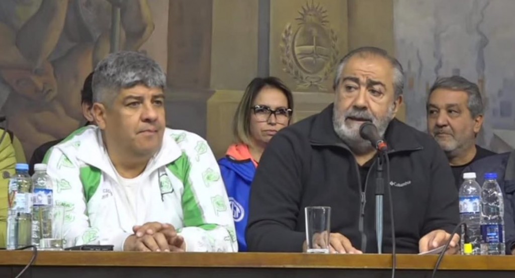“Nuestros derechos no son inventos sino que están consagrados en la Constitución”, replicó Piumato. La CGT convocó al paro de hoy bajo la consigna “en defensa de nuestros derechos, la Patria no se vende”.
